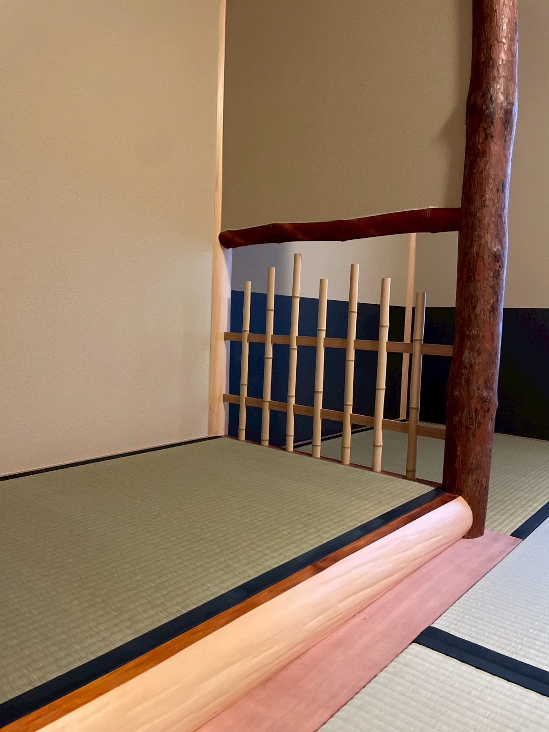 床框:北山絞り丸太 天端カシュー拭き取り